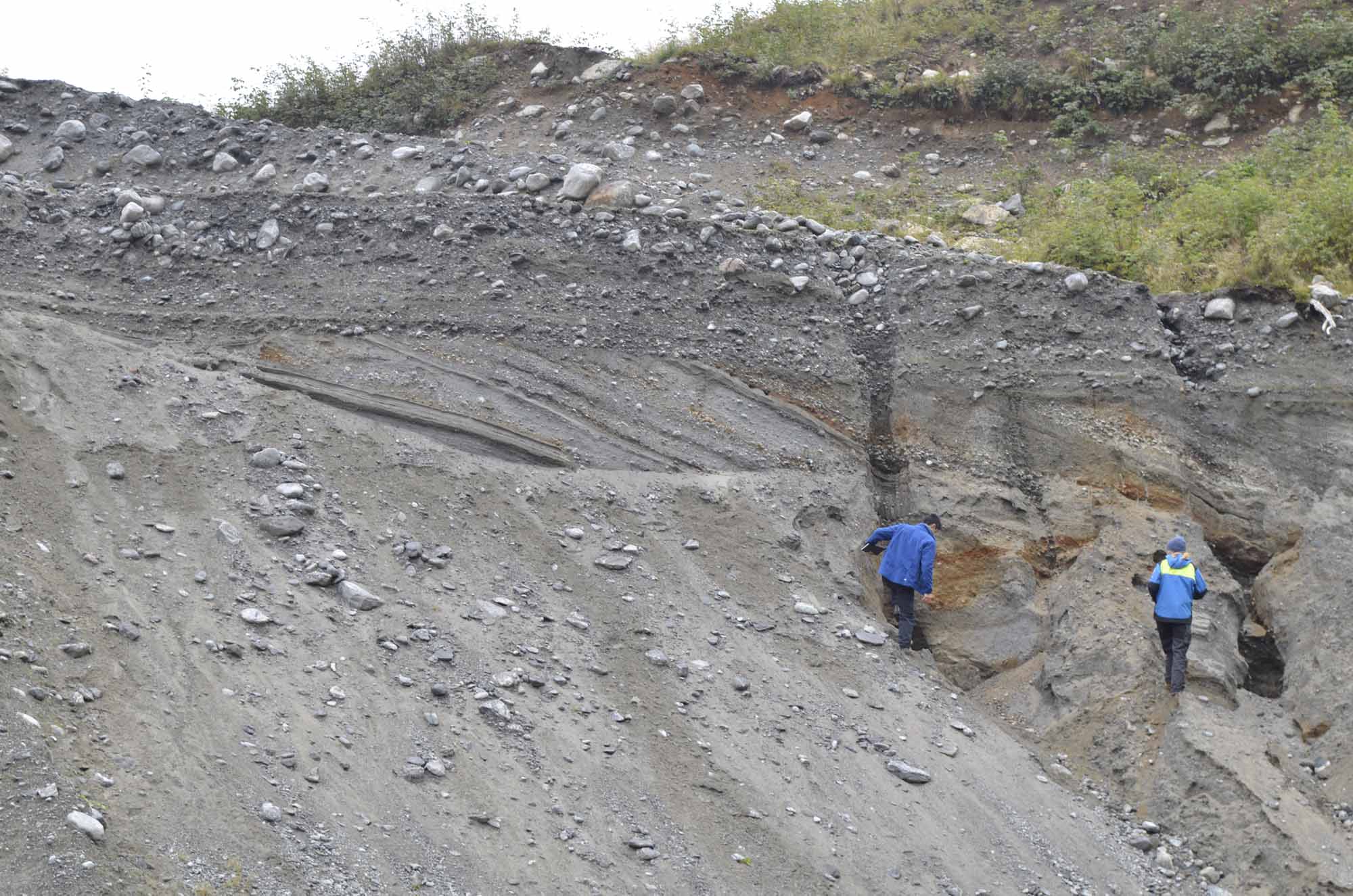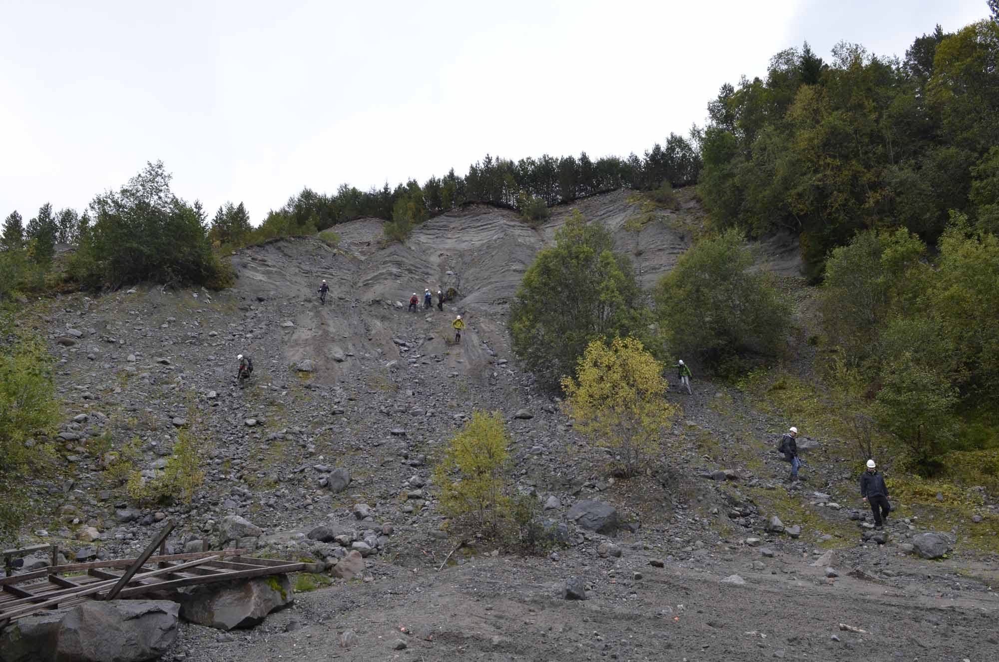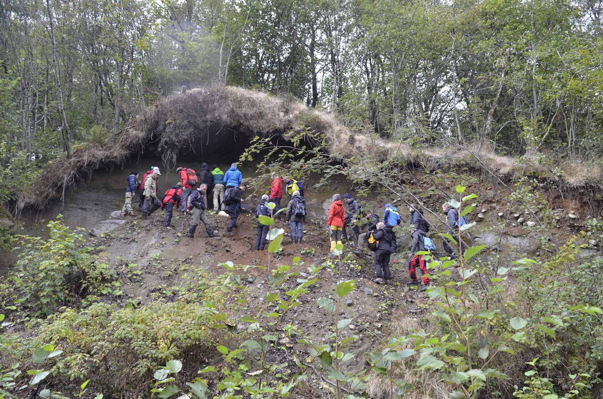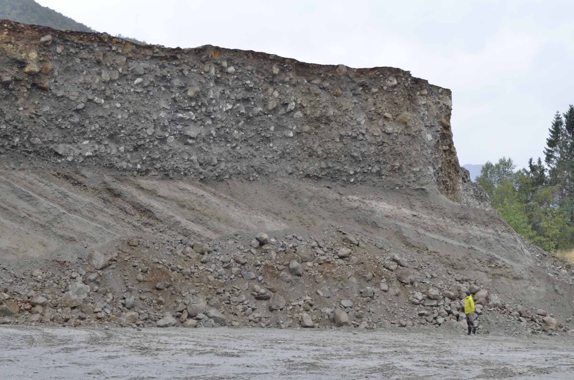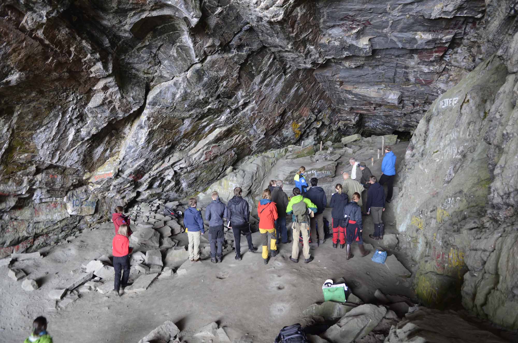 In Sykkylven where we went on day 3, there is a series of cirque moraines that were formed in the Younger Dryas as glaciers expanded out of the cirques. We drove by some of these moraines and studied the site at Riksheim in more detail. Good sections from abandoned gravel pits reveal both deltaic proglacial sediments and a diamicton from the overriding cirque glacier. After Riksheim we went to an impressive section in a coarse-grained sandur delta at Hundeidvik. Part of the section had very good transitions from top- to fore-sets showing contemporaneous sea level. The last site of the day was the cave Hamnsundhelleren were large-scale excavations we made in the 1990’s disclosed sediments that could be correlated with the sequence in Skjonghelleren, but not the least, opened the possibility that there is an interstadial younger than the Ålesund interstadial.