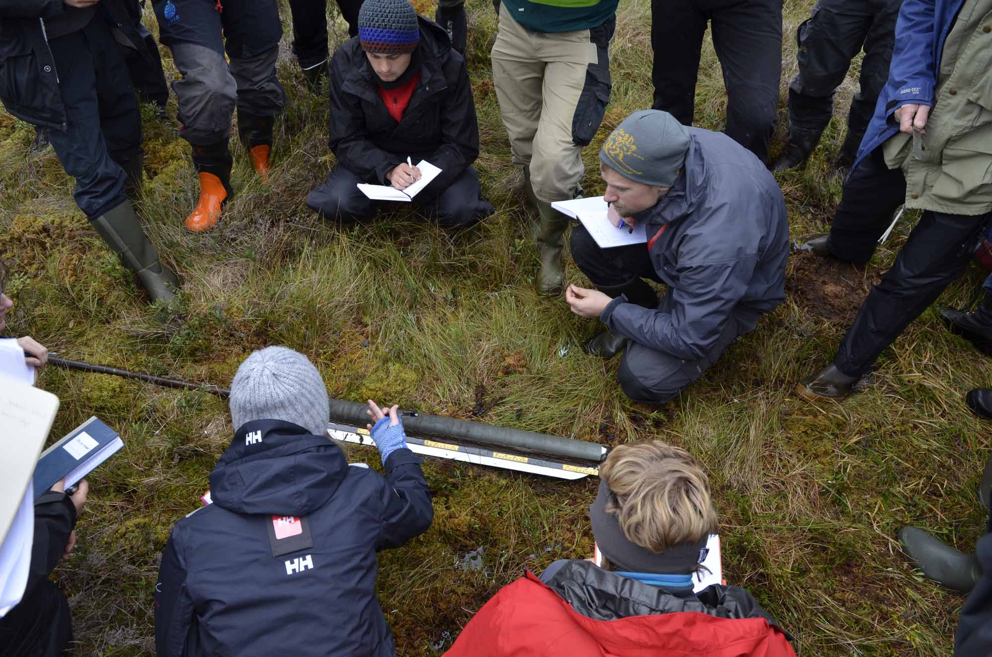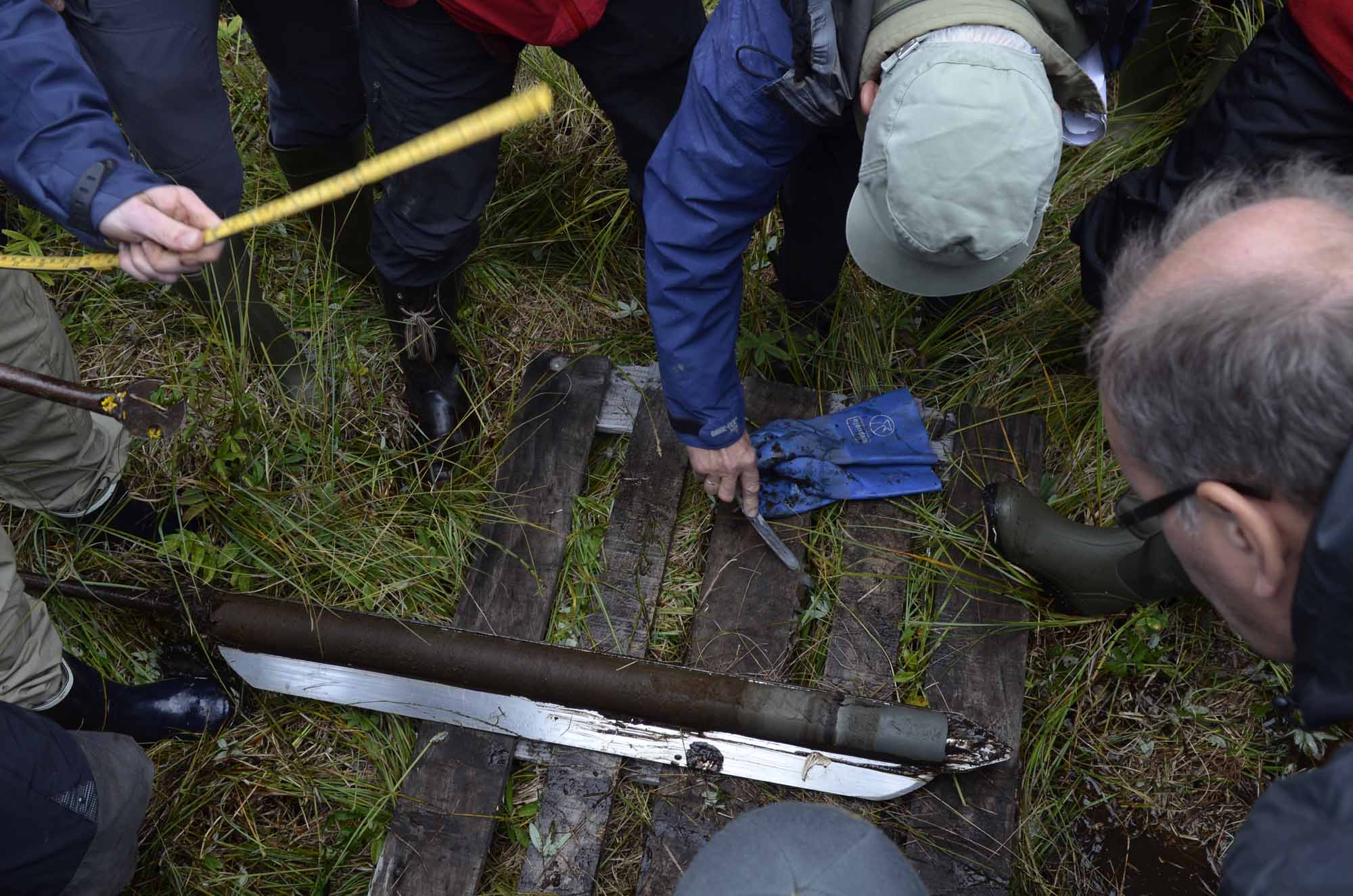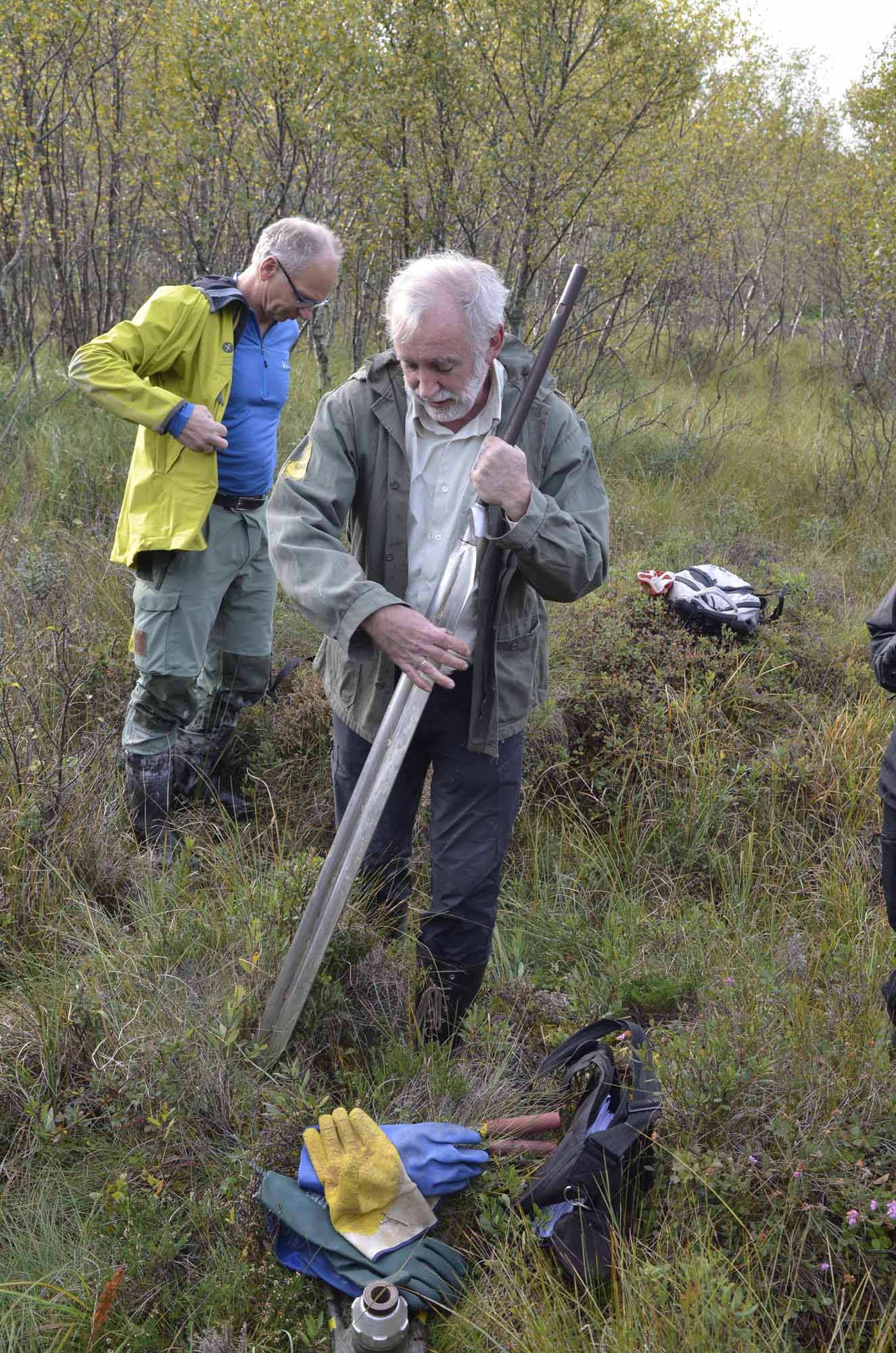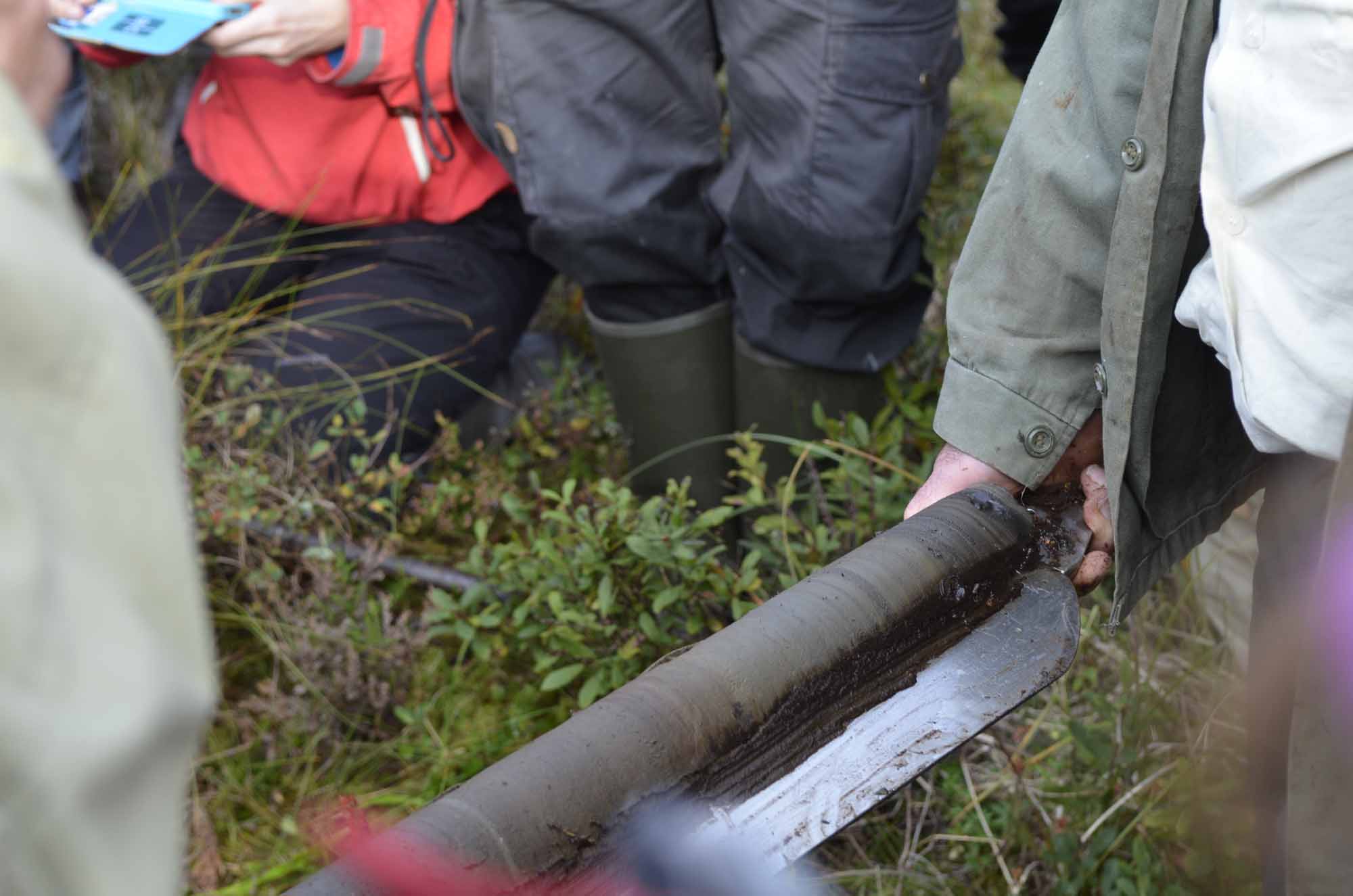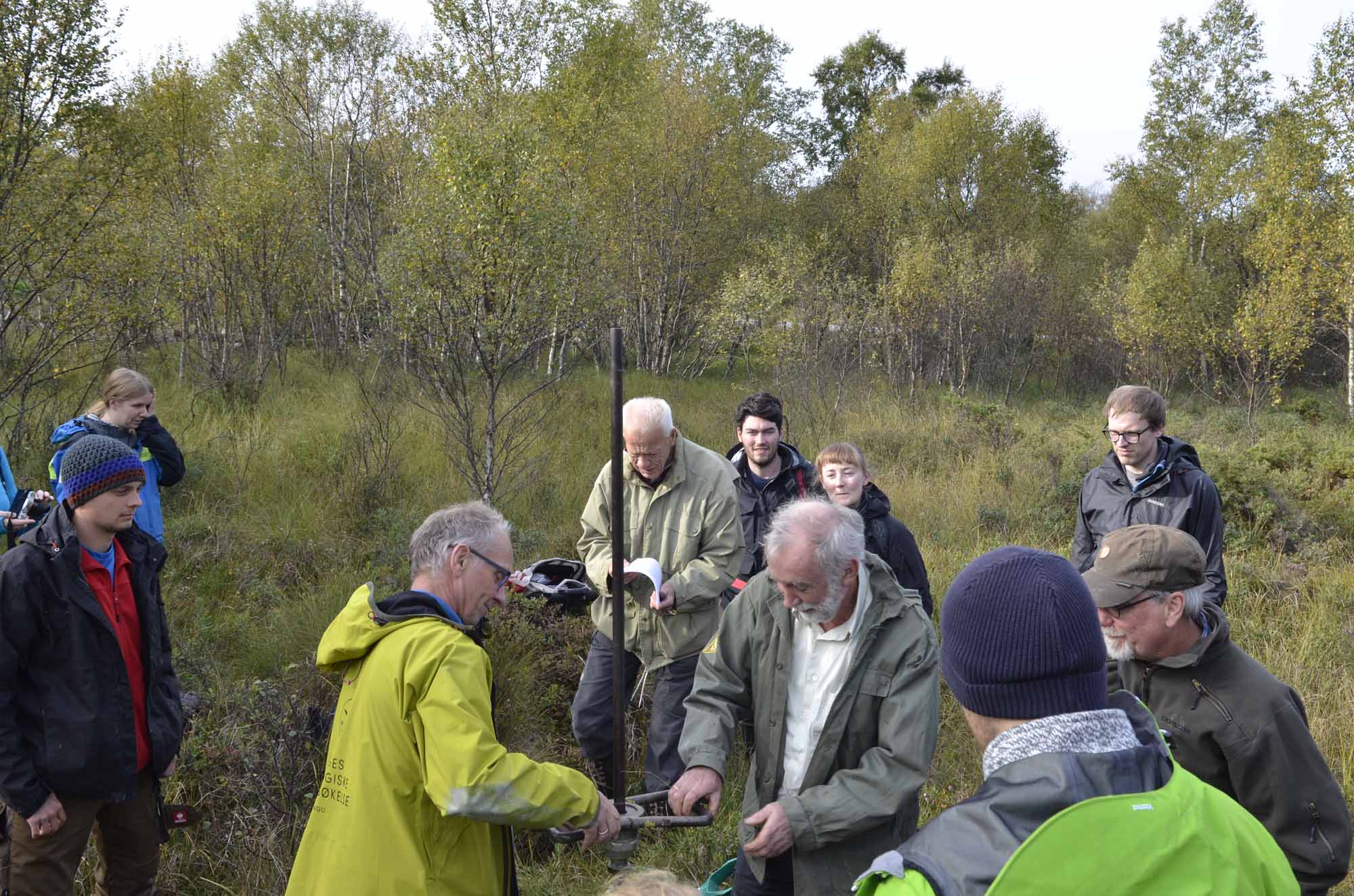 We met at the Ålesund airport and went directly to the Skjonghelleren cave where excavations in the mid-1980’s made history both in terms of glacial geology and palaezoology, especially about the Ålesund interstadial 24-38 ka BP. The group was split in two; while one half was in Skjonghelleren the other half visited nearby sites with marine terraces and beach ridges. From Skjonghelleren we drove by our bus in the sub-sea tunnels via the city of Ålesund, and by ferry to our next site at the small island of Dimna. By applying a Russian peat corer, we retrieved a nice core containing the Vedde Ash and surely also the Dimna Ash, although the latter is invisible to the naked eye. Overnight was in the town of Ulsteinvik.