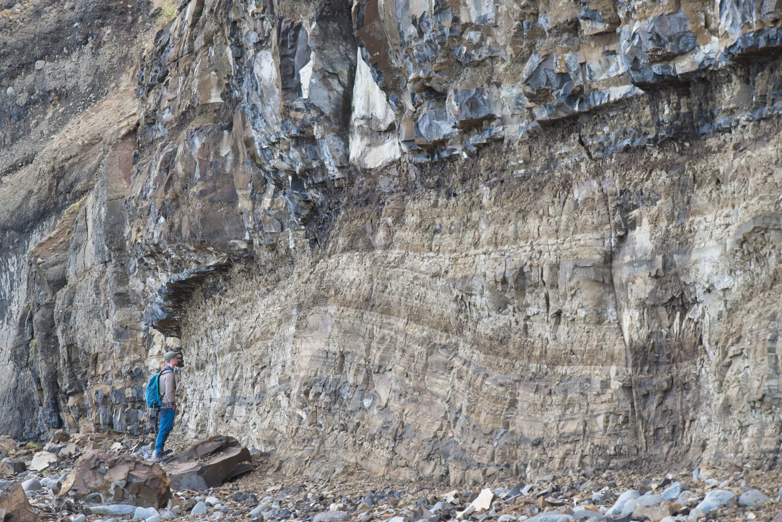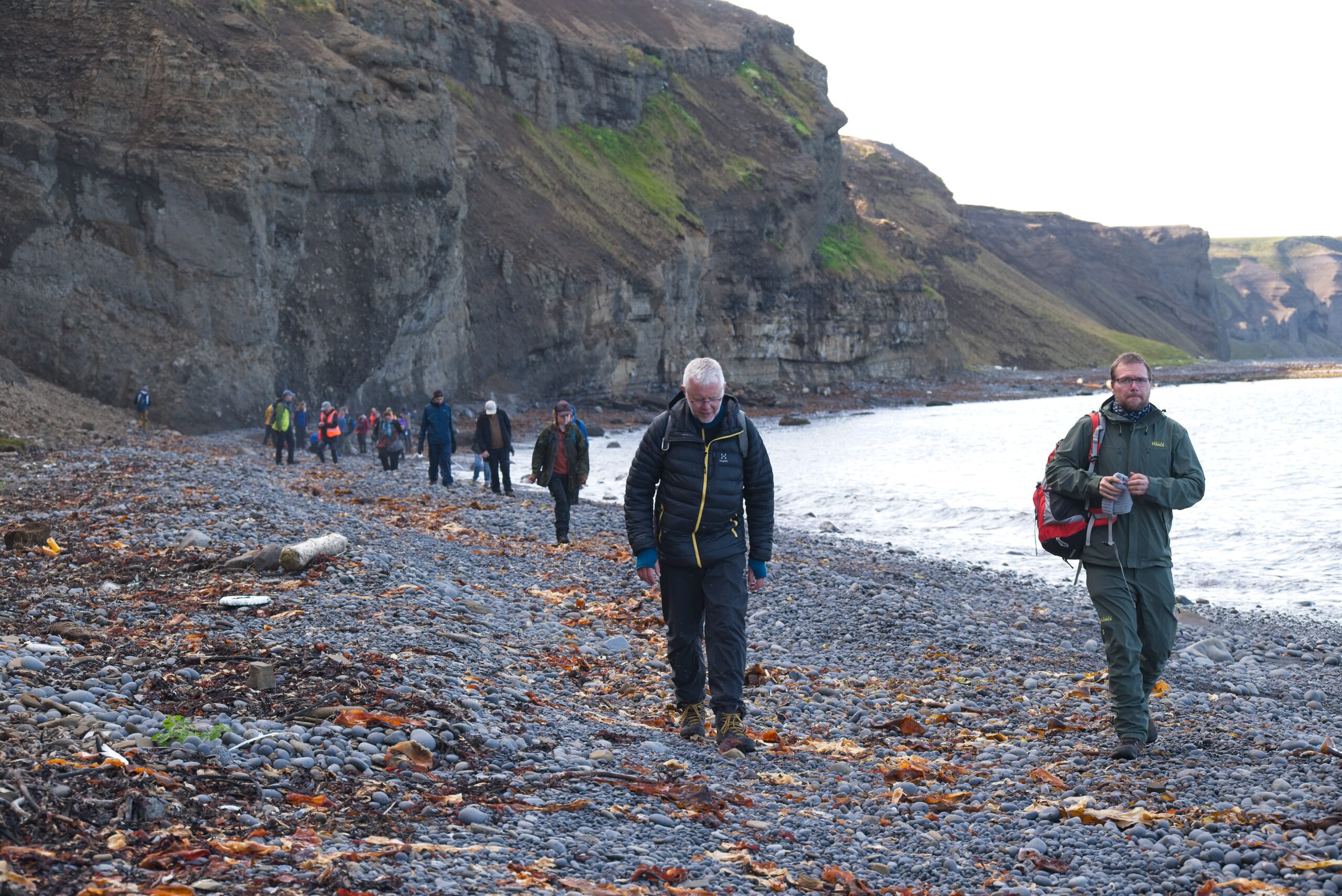 Following lunch at the harbourfront in Húsavík, Ólafur guided us into the Quaternary and along the Breiðavík deposits. Here 14 cycles of glacial and interglacial sediments, preserved by intervening layers of lava record a unique sequence of repeated glaciations to the northern coastline from 2.5-1.2 Ma. The day was wrapped up at the cliff viewpoint overlooking the tectonically controlled Öxarfjörður.